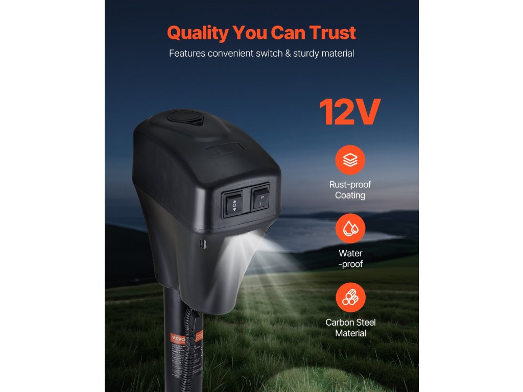 Ez a nagy teljesítményű nyelvemelő tartós szénacélból, horganyzott csövekből és 12 voltos egyenáramú motorból készült, és tartósnak készült. A fekete porfesték és a horganyzás kiváló korrózióállóságot biztosít, meghosszabbítva ezzel az élettartamát.