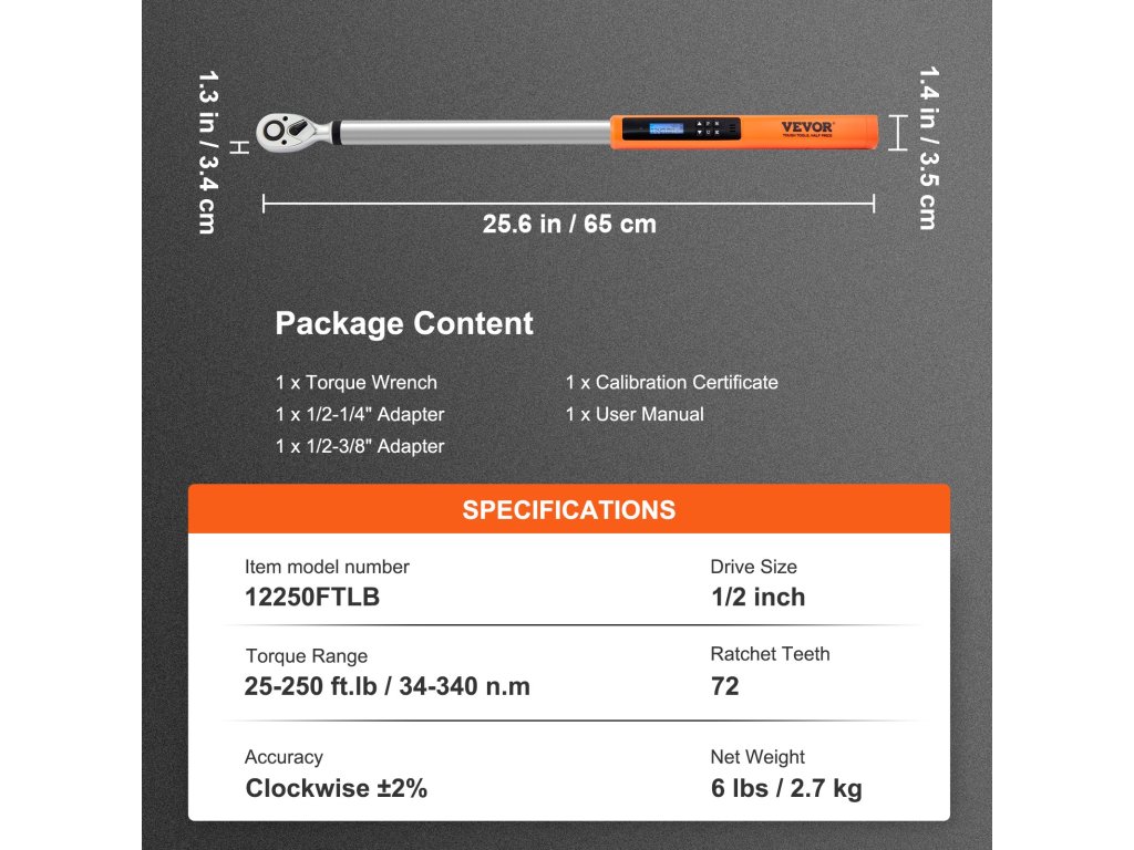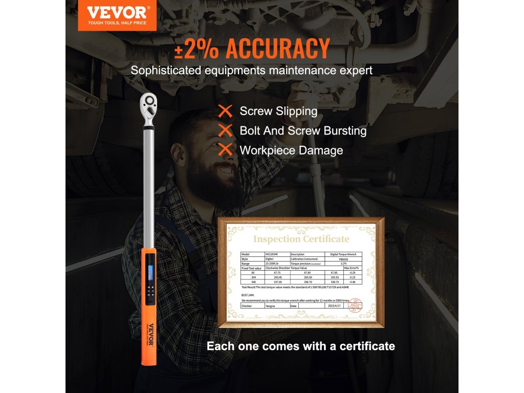 Ne keressen tovább, mint a VEVOR nagy pontosságú digitális nyomatékkulcs! Ez a ±2%-os pontosságú nyomatékkulcs ideális precíziós és értékes műszerek, valamint gépjárművek javításához.