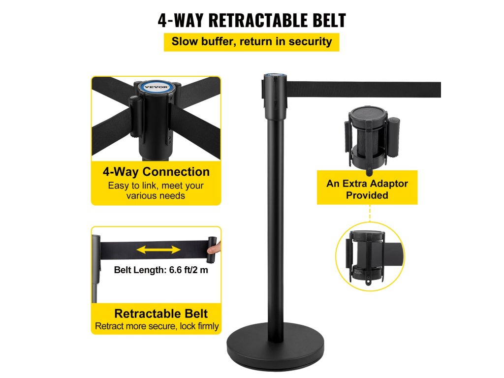 Stojany na kontrolu davu VEVOR majú elegantný a profesionálny dizajn. Celočierny štýl pôsobí elegantne a sofistikovane. Tento dizajn dodá klasický nádych každej príležitosti. Výsuvné pásy sú tiež čierne, čím sa zachováva elegantný vzhľad. Tieto stojany sa bez problémov začlenia do profesionálneho prostredia. Dobre sa hodia na podujatia, pri ktorých záleží na vzhľade. Profesionálny dizajn zaručuje, že zapadnú do akéhokoľvek interiéru. Vylepšite vzhľad svojej udalosti týmito štýlovými stojanmi. Získajte funkčnosť aj eleganciu v jednom výrobku.