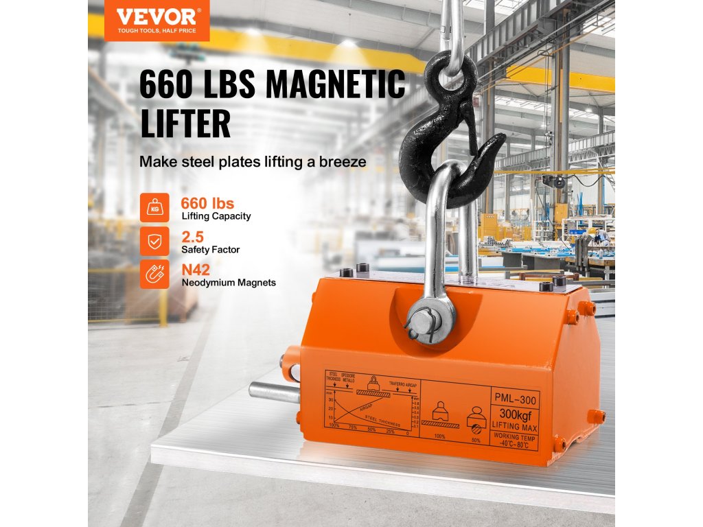 Állandó mágneses emelőnk könnyedén képes 660 font/300 kg terhet emelni. Erős N42 neodímium mágnesekből készül, ami lehetővé teszi, hogy hatékonyan emeljen különféle acél anyagokat elektromos áramellátás nélkül az ipari üzemekben. Készüljön fel tehát ennek a kiváló acél munkadarab-emelőnek a használatára!