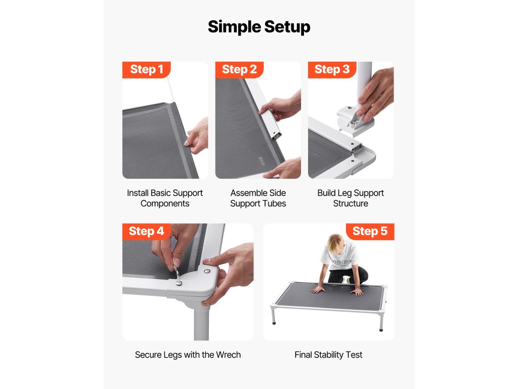 A teljesen zárt alumínium csövek akár 110 font/50 kg-ot is elbírnak - alkalmas nagytestű kutyák (pl. labradorok/aranyak) vagy 2-3 kisebb háziállat számára. A rágásálló kialakítás sima felülettel és gumi végekkel rendelkezik, hogy megakadályozza a fogak megragadását, így biztosítva a tartósságot a kiskutyák harapdálása során. A szilárd, nem ingadozó támasz tartós stabilitást biztosít.