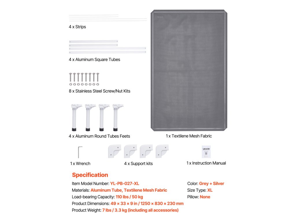 | Materiály | Hliníková rúrka, textilná sieťovina |
