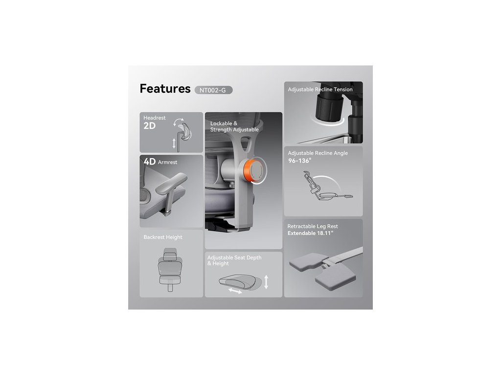 | Általános | Címke: NEWTRAL Típus: ergonomikus szék Modell: NT002 Szín: szürke |