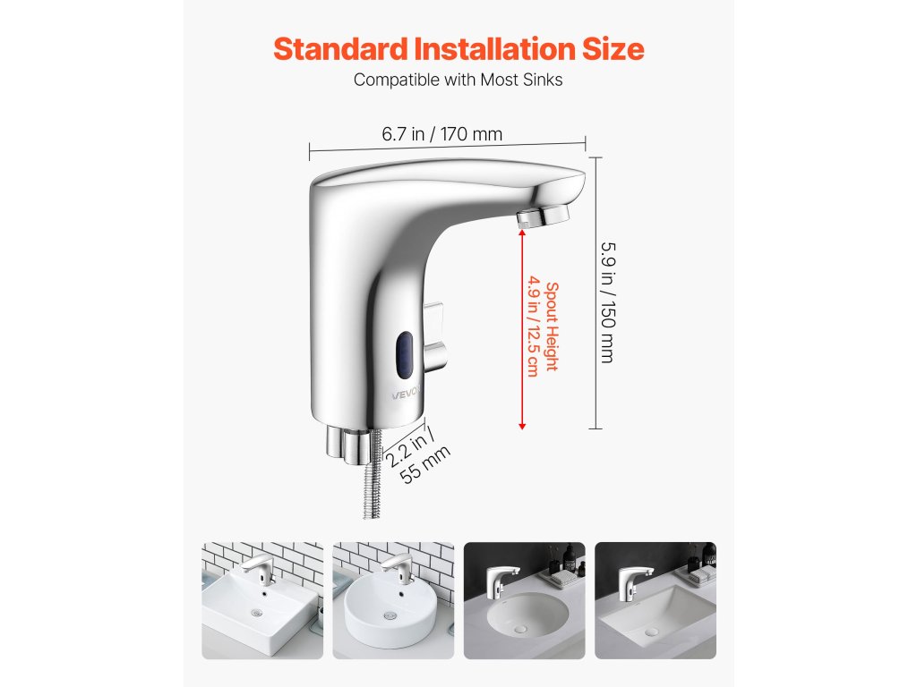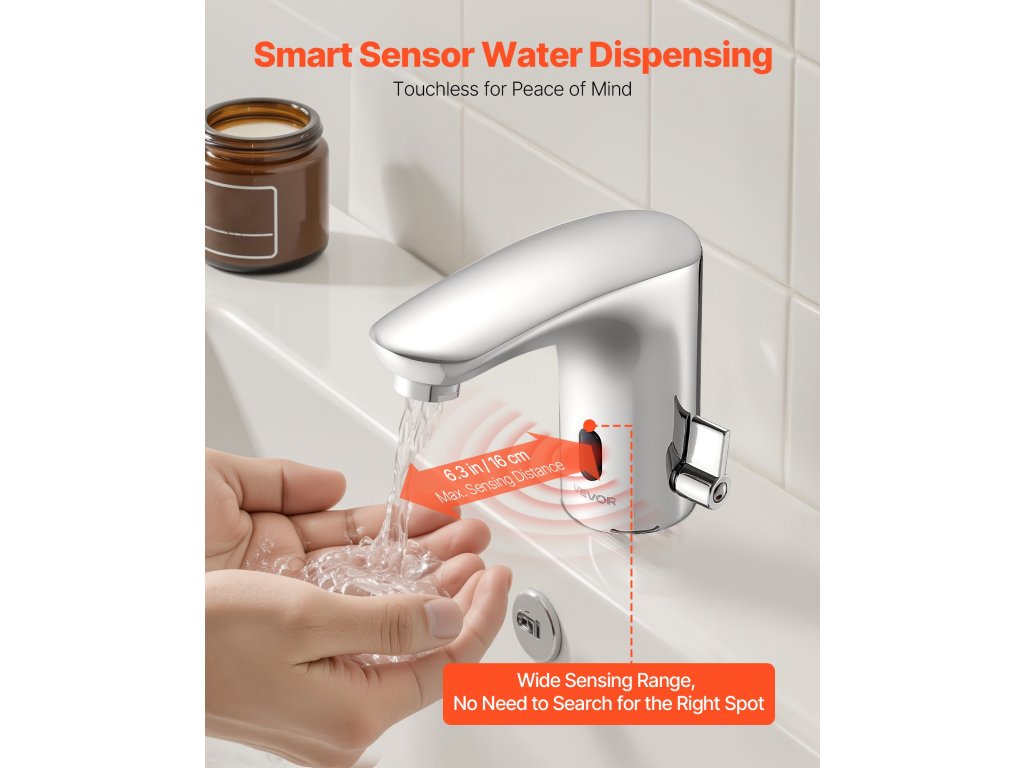 Ez a csaptelep érzékeny infravörös érzékelővel van felszerelve - a víz automatikusan folyik, amikor a kezek a közelében vannak, és megáll, amikor elhagyják. Megbízható és hatékony, nincs szükség kézi érintkezésre.