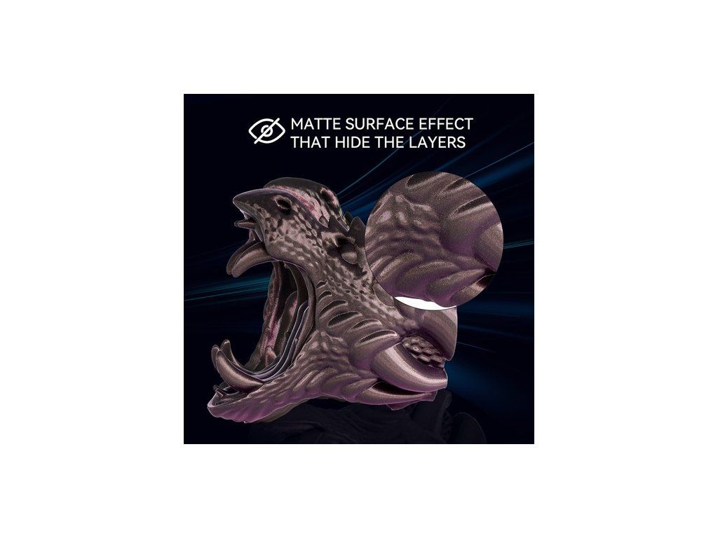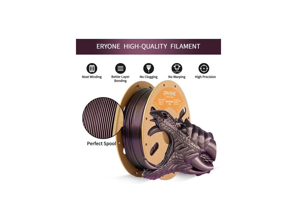 Az ERYONE Burnt Titanium PLA Filament a változó fény hatására megváltoztatja a színét, és így egy lenyűgöző, csillagszerűen csillogó hatást kelt. A különböző fények és szögek különböző vizuális hatásokat eredményeznek, hogy művészi jelleget kölcsönözzön projektjeidnek.