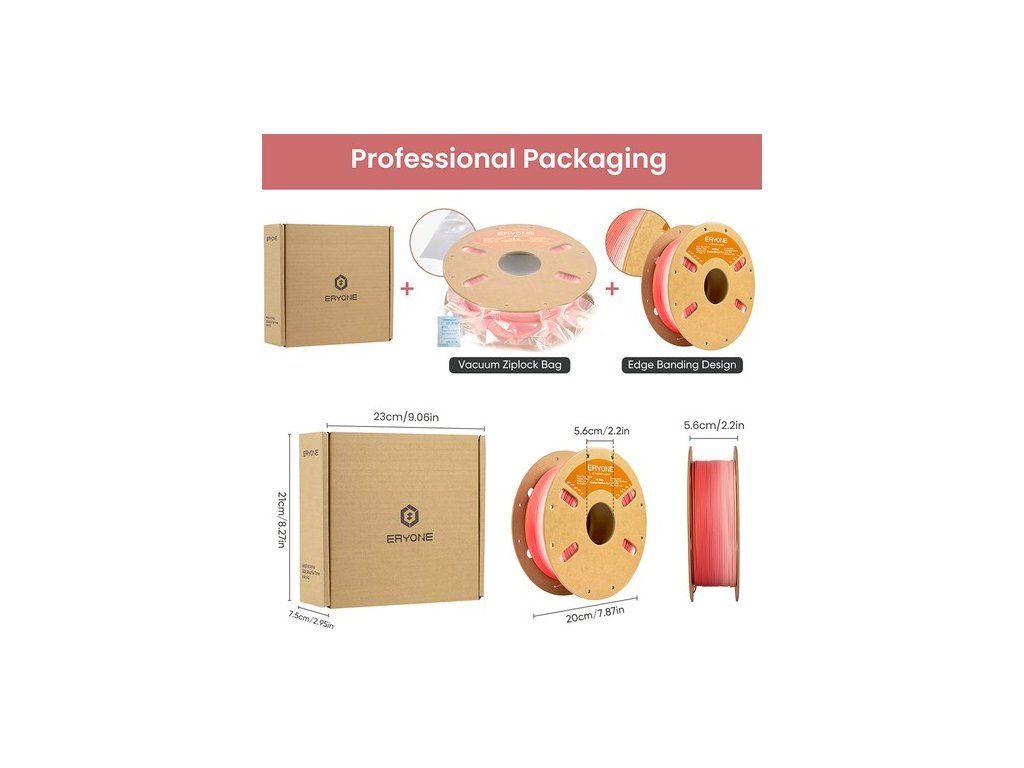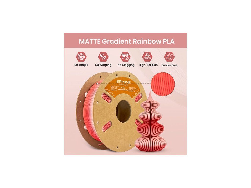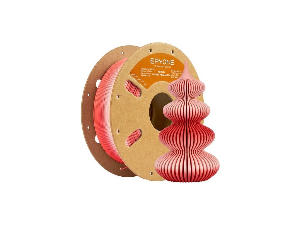 Az ERYONE Matte Gradient Multicolor PLA Filament 2-3 színt tartalmaz 5-8 méteres gradiensben, lenyűgöző és gyönyörű nyomatok készítése érdekében.