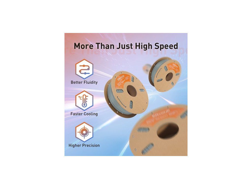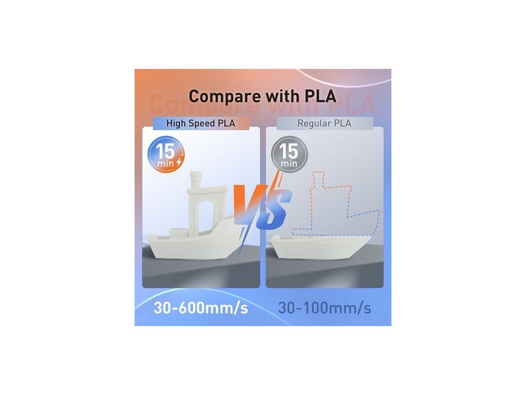 A PLA nagy sebessége jelentősen csökkenti a nyomtatási időt, ami gyorsabb projektzárást és nagyobb termelékenységet biztosít. Ennek a nagy sebességű filamentnek a használata csökkenti a várakozási időt, és több időt biztosít az alkotásra.