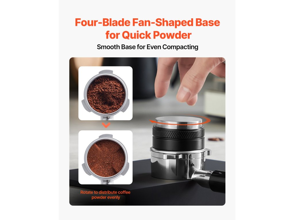 A magasságállítás a különböző portaszűrő-mélységekhez igazítható, a standard és egyedi méretekhez egyaránt illeszkedik, így biztosítva az egyenletes tömörítést és a jobb minőségű eszpresszót. A nagy sűrűségű háló a közepén az ujjak szélességéhez igazodik a kényelmes, csúszásmentes kezelés érdekében.