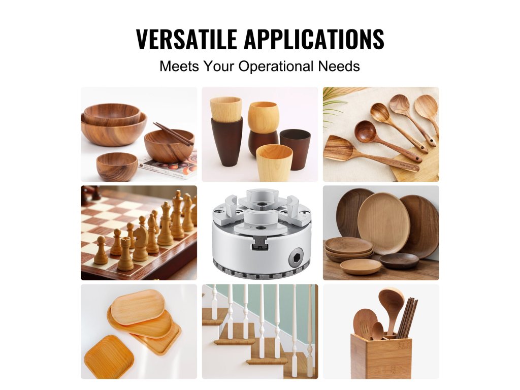 Akár famegmunkálással, fúrással, csiszolással vagy más területekkel foglalkozik, a 4-pofás esztergafogó széles alkalmazkodóképességével megfelel az Ön igényeinek. Akár személyes használatra, akár ipari termelésre, ez a fa esztergapadló tokmány kiváló teljesítményt és megbízhatóságot biztosít, hogy megfeleljen az Ön igényeinek.