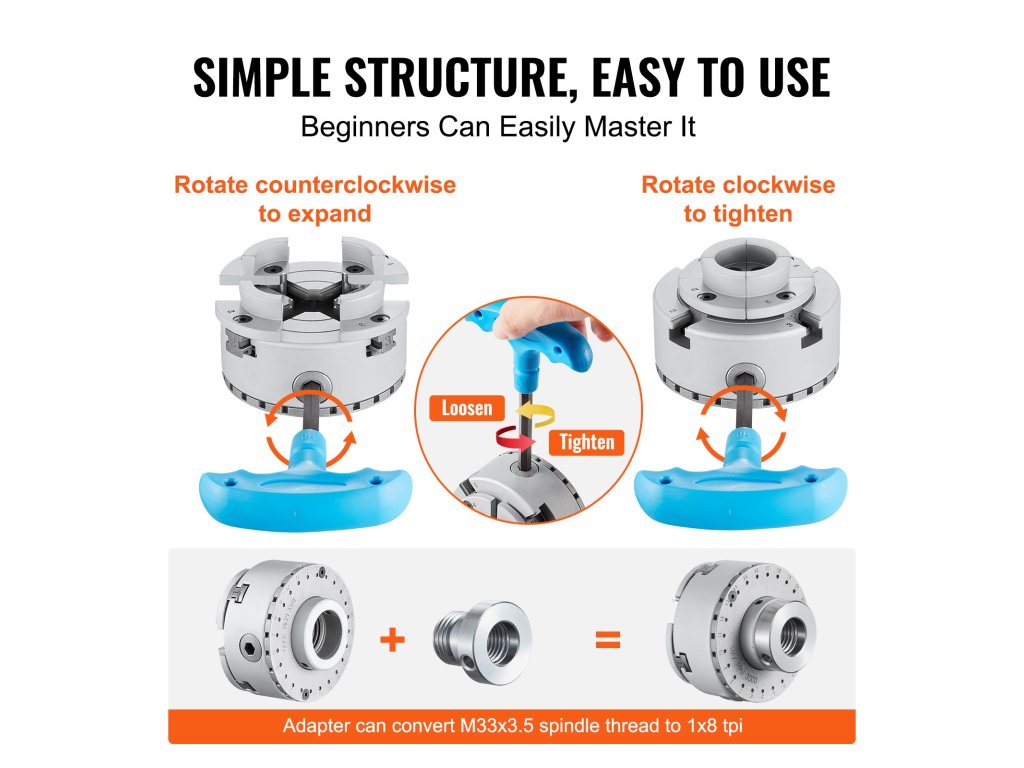 Az esztergapad kulcsfontosságú alkatrészeként a tokmány rugalmasságának és kényelmének köszönhetően jelentős szerepet játszik a munka hatékonyságának növelésében. A mi tokmányunk állítható méretekkel rendelkezik. A T-alakú kulcs egyszerű elfordításával a kezelő könnyedén kiterjesztheti és befeszítheti a tokmányt.