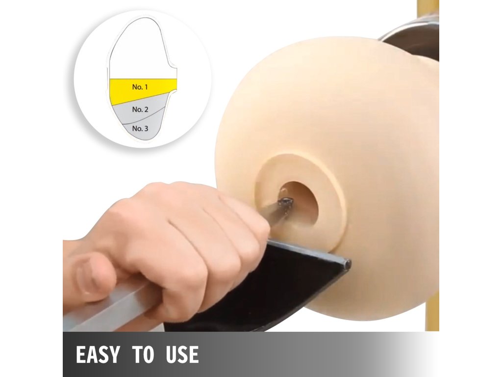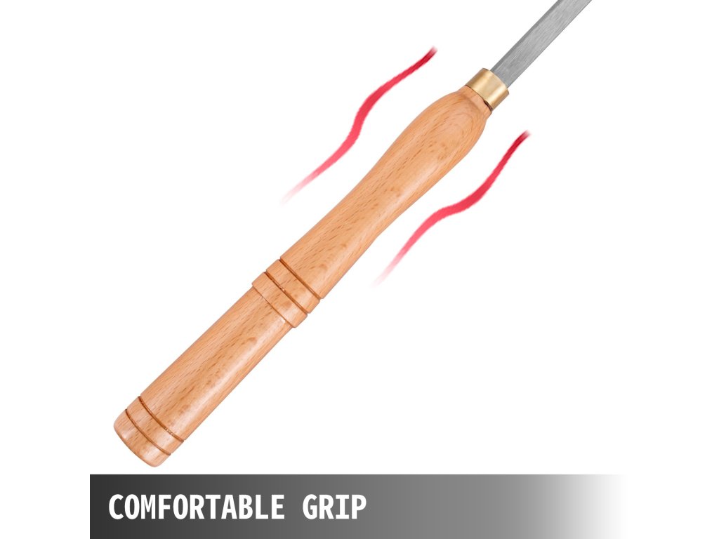 Az esztergakészlet fogantyúi bükkfából készültek. Ívelt formájuk pedig tökéletesen illeszkedik az emberi kézbe, így kevésbé fárasztó a fogásuk.