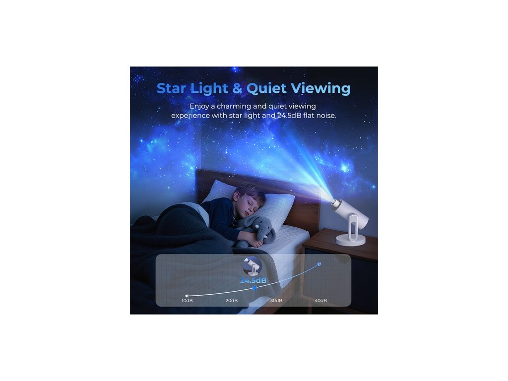 Az ETOE Starfish Plus projektor több mint egy megjelenítő eszköz; kifinomult érintésérzékelős éjszakai fényt is tartalmaz. Ez az innovatív funkció zökkenőmentes működést tesz lehetővé, így egyszerűen bekapcsolhatja, és tetszés szerint beállíthatja a színt és a fényerőt. Rengeteg fényt biztosít, amely ideális a sötétben lévő tárgyak megtalálásához, nyugtató fényként szolgál a szoptató csecsemők számára, és nyugtató légkört teremt a hálószobában a pihenéshez.