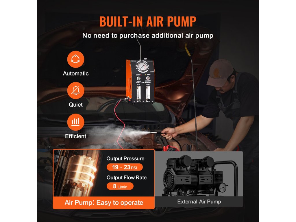 A VEVOR autóipari füstölőgép tökéletes társ a szivárgásvizsgálathoz! Legyen szó az EVAP-rendszerről, az üzemanyagtartály-rendszerről, a kipufogó- és szívórendszerről, a jármű tömítettségének vizsgálatáról, ez a gép mindenre képes. Ideális személygépkocsikhoz, motorkerékpárokhoz, motoros szánokhoz, ATV-khez, könnyű tehergépkocsikhoz - könnyedén lefedi a diagnosztikai igényeket.