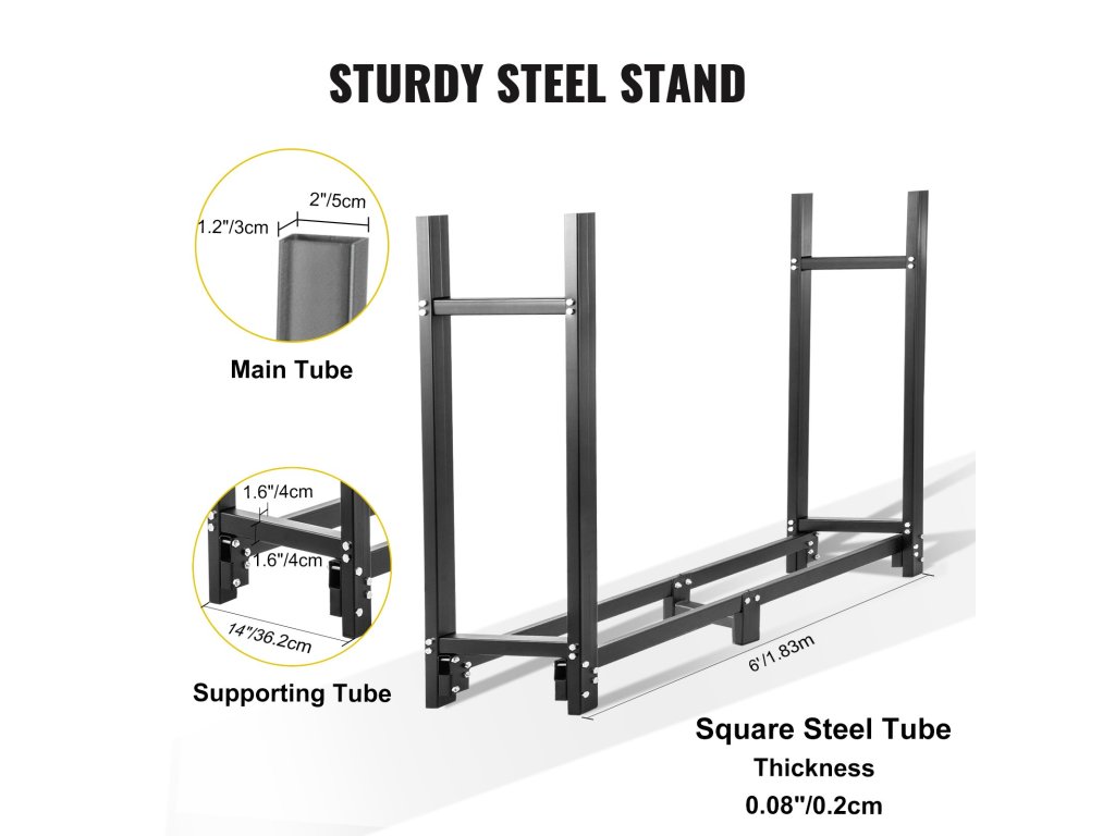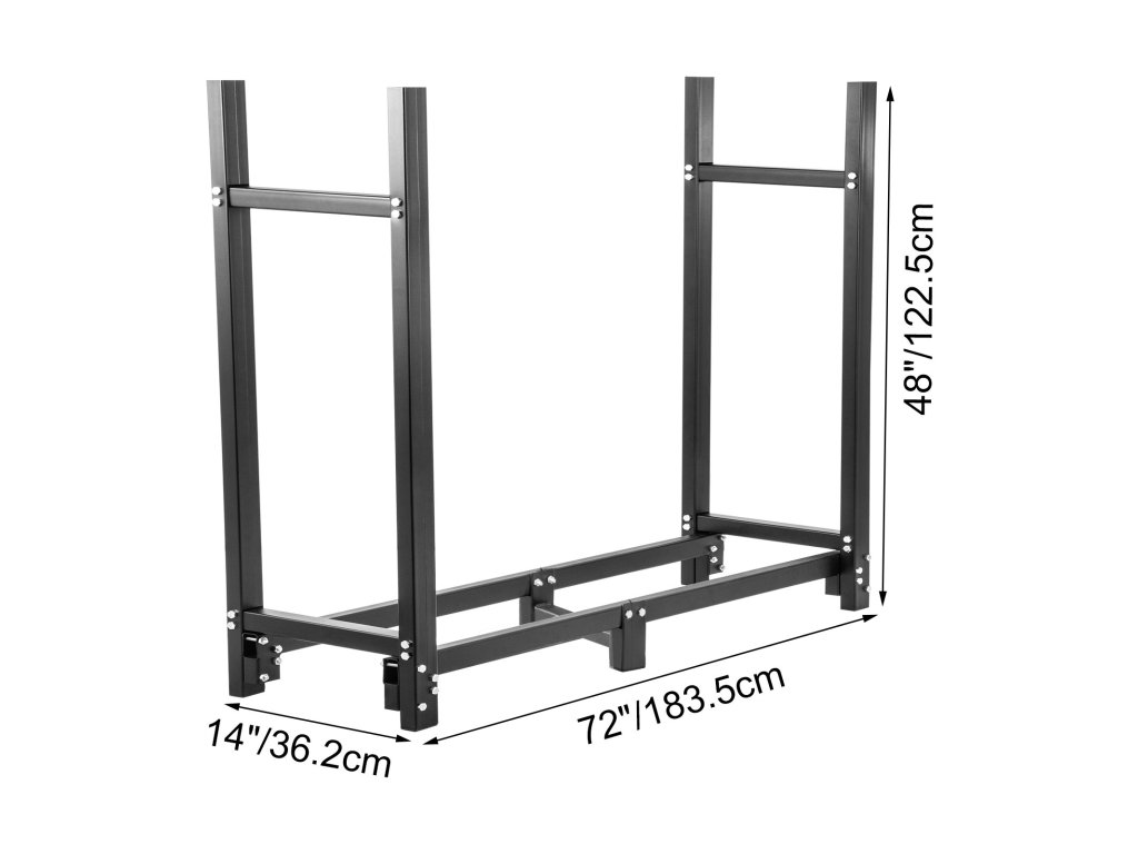 A faállvány nagy súlyt is elbír anélkül, hogy a tartó rúd meghajlana a fa tárolása után. A nagy teherbírású rönkállvány 1300 font/590 kg halom fát tart és tárol.