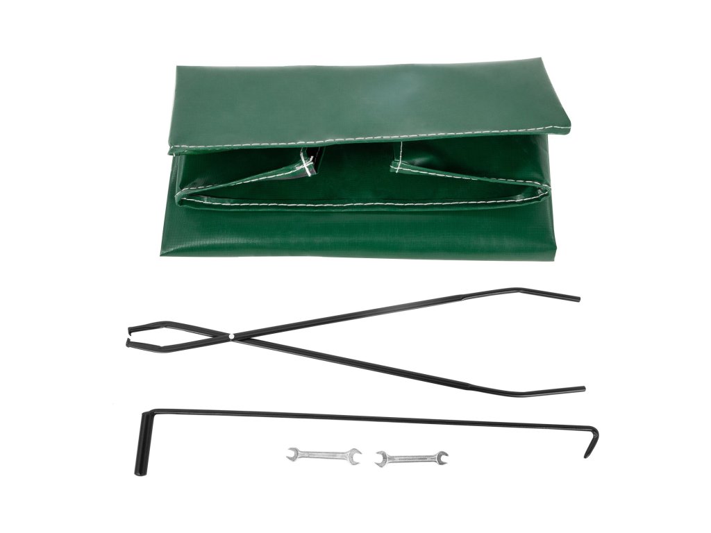 Tűzifaállványunkhoz egy fedél és egy kandallószerszámkészlet tartozik, amely tartalmaz egy 71 mm/2,8" átmérőjű tűzifa gereblyét és tűzcsipeszt. A mellékelt csavarkulcsok gyorsabbá és kényelmesebbé teszik a telepítést.