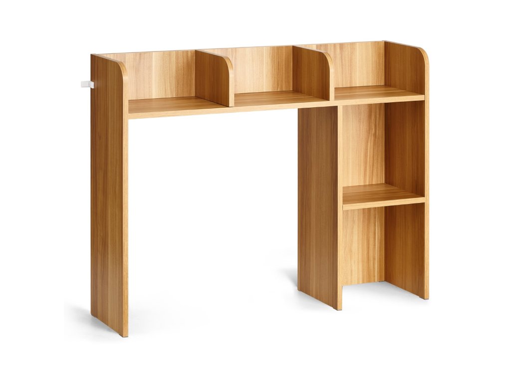 A könyvek, irodai kellékek és egyebek rendszerezésére szolgáló több rekesszel felszerelt íróasztal-polcsín segít rendezett munkaterületet kialakítani és növeli a termelékenységet.