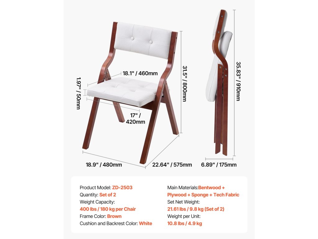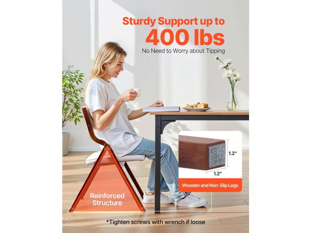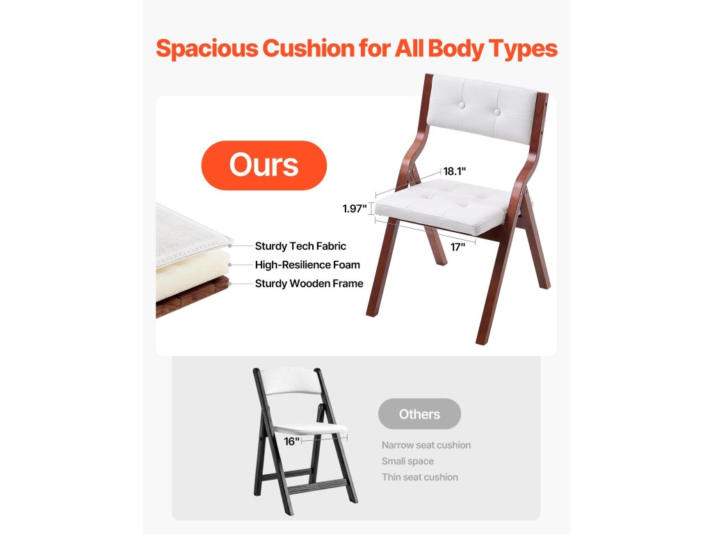 A párnákkal ellátott összecsukható szék megbízható tömörfa vázzal rendelkezik, erős háromszög alakú konstrukcióval, amely erős teherbírást és hosszú élettartamot biztosít.