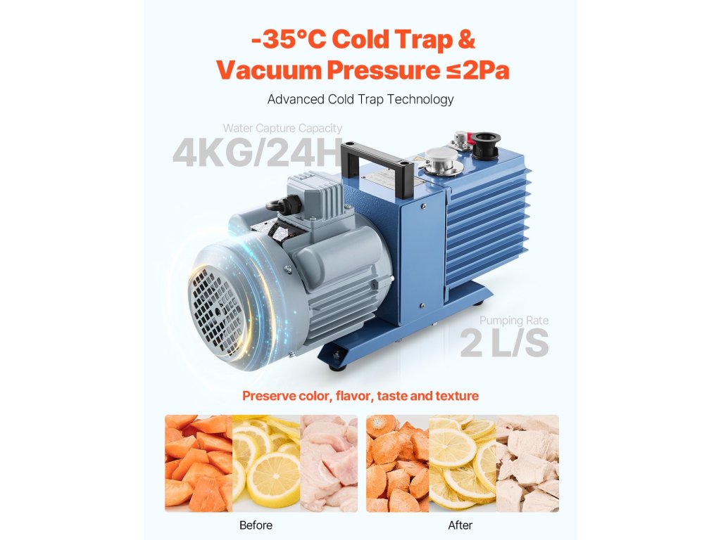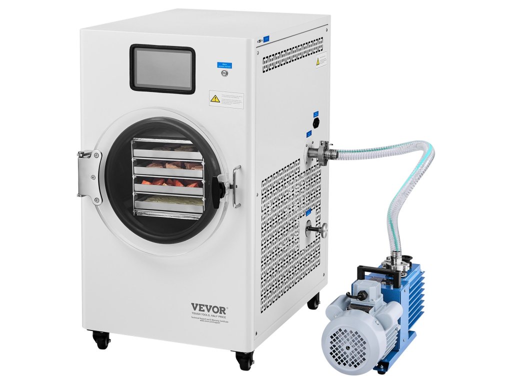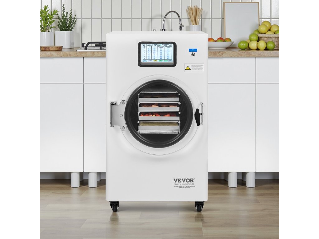 Ez a nagy kapacitású, 4-6 kg-os fagyasztószárító vákuumos fagyasztva szárítási technológiát alkalmaz az élelmiszerek tartósítására. A légszárítással és a dehidratálási módszerekkel összehasonlítva a fagyasztva szárítás megőrzi az élelmiszerek színét, aromáját, ízét, textúráját és tápértékét természetes állapotukban.