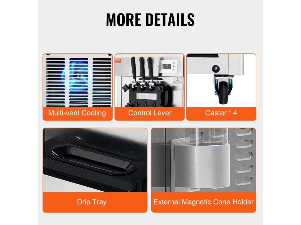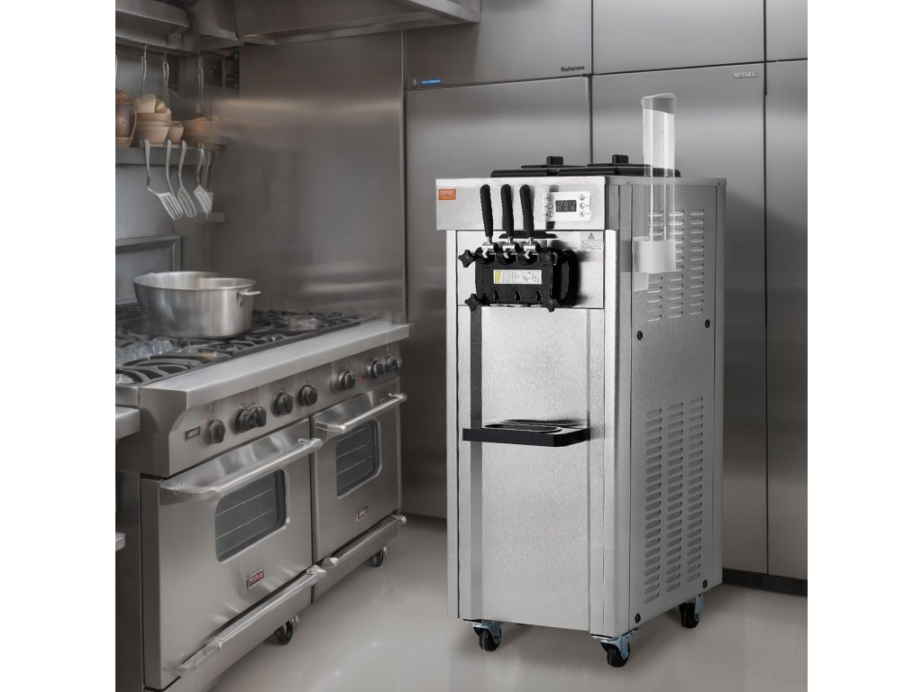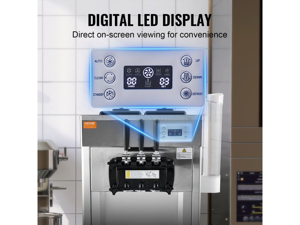 Ez a finom kiszolgáló fagylaltgép kiváló minőségű rozsdamentes acélból készült, 304 élelmiszeripari minőségű rozsdamentes acélhengerrel. Korrózióálló, így hosszú élettartamot és higiéniát biztosít a kereskedelmi létesítményekben. Könnyen tisztítható: Csak öntsön vizet és nyomja meg a gombot az automatikus tisztítási funkció elindításához.