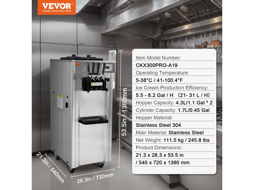 | Fagylaltgyártás hatékonysága | 21L (5.5gal) - 31L (8.2gal) /h |