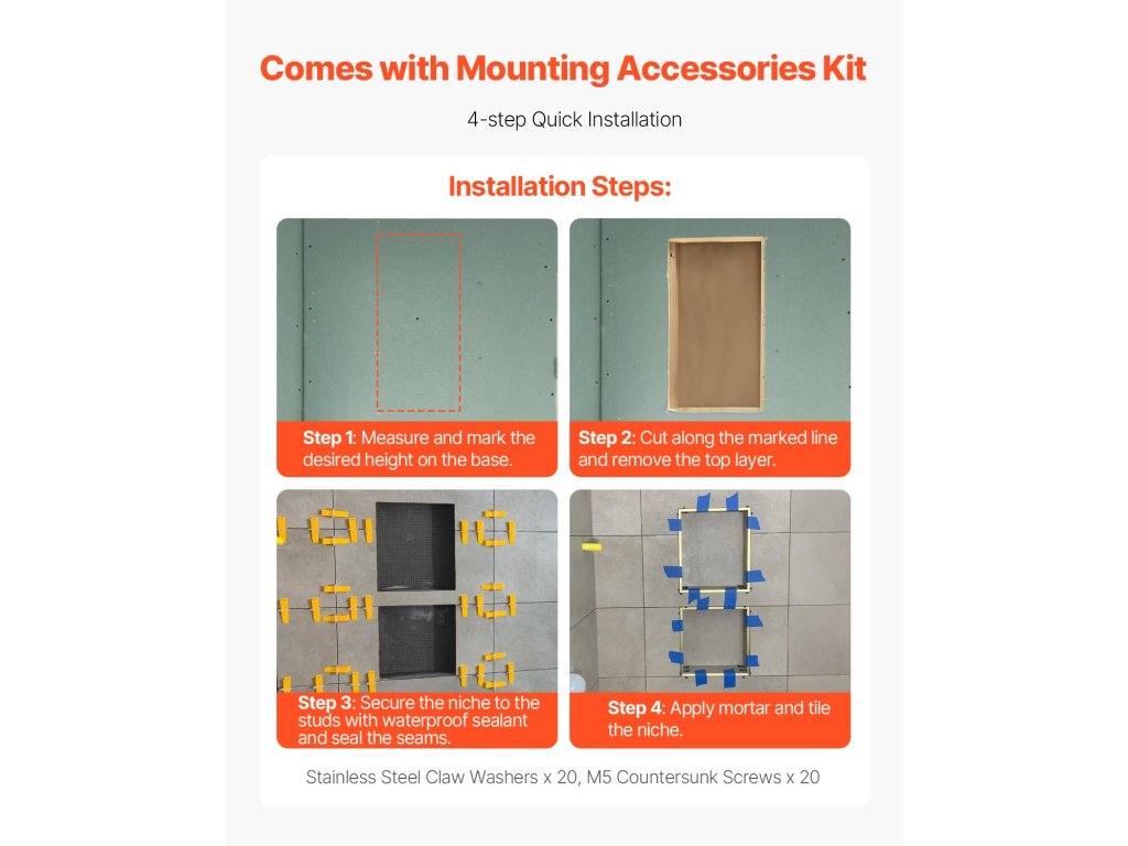 Ez a fali fülke durva felületű, rácsos textúrával rendelkezik, amelyet úgy terveztek, hogy különböző csemperagasztókkal működjön együtt, és erős tapadást biztosítson a csempefektetés során. Csökkenti a csempék leesésének vagy meglazulásának kockázatát, miközben nagyobb rugalmasságot biztosít.