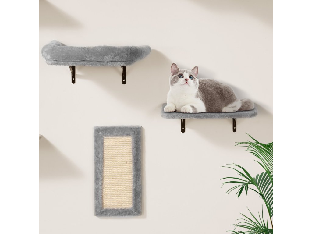 A falra szerelhető macskabútor szett különböző tartozékokkal rendelkezik, hogy megfeleljen a különböző falra szerelési igényeknek.