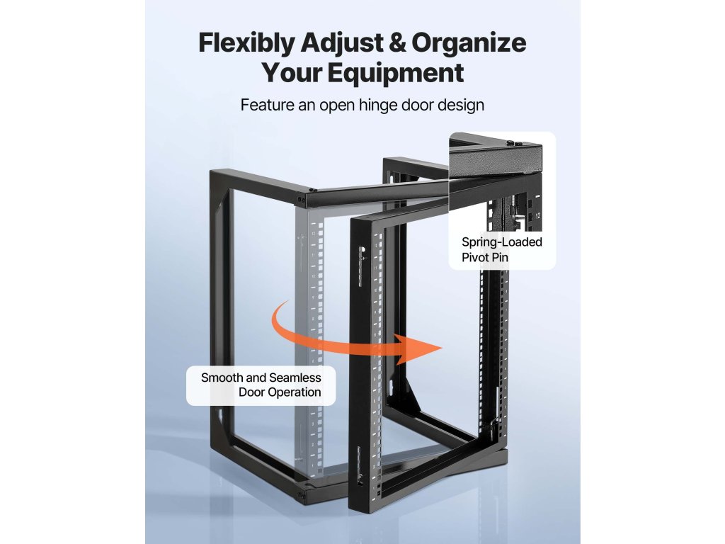 Ez a falra szerelhető hálózati állvány könnyű hozzáférést biztosít a berendezések karbantartásához és cseréjéhez.