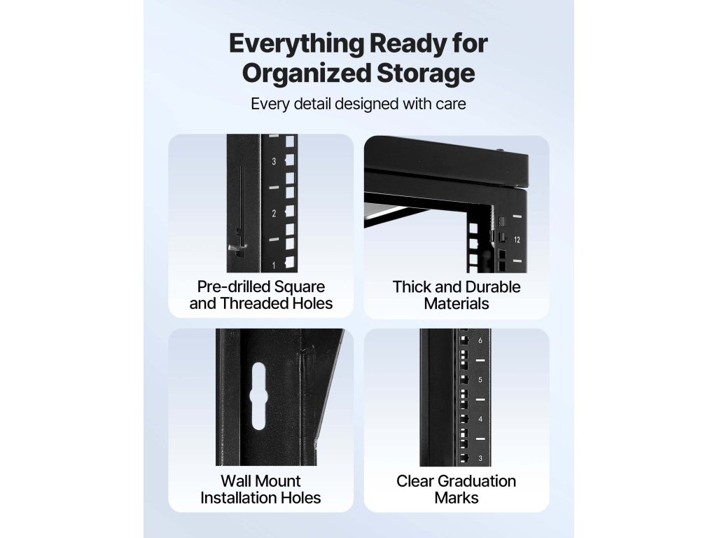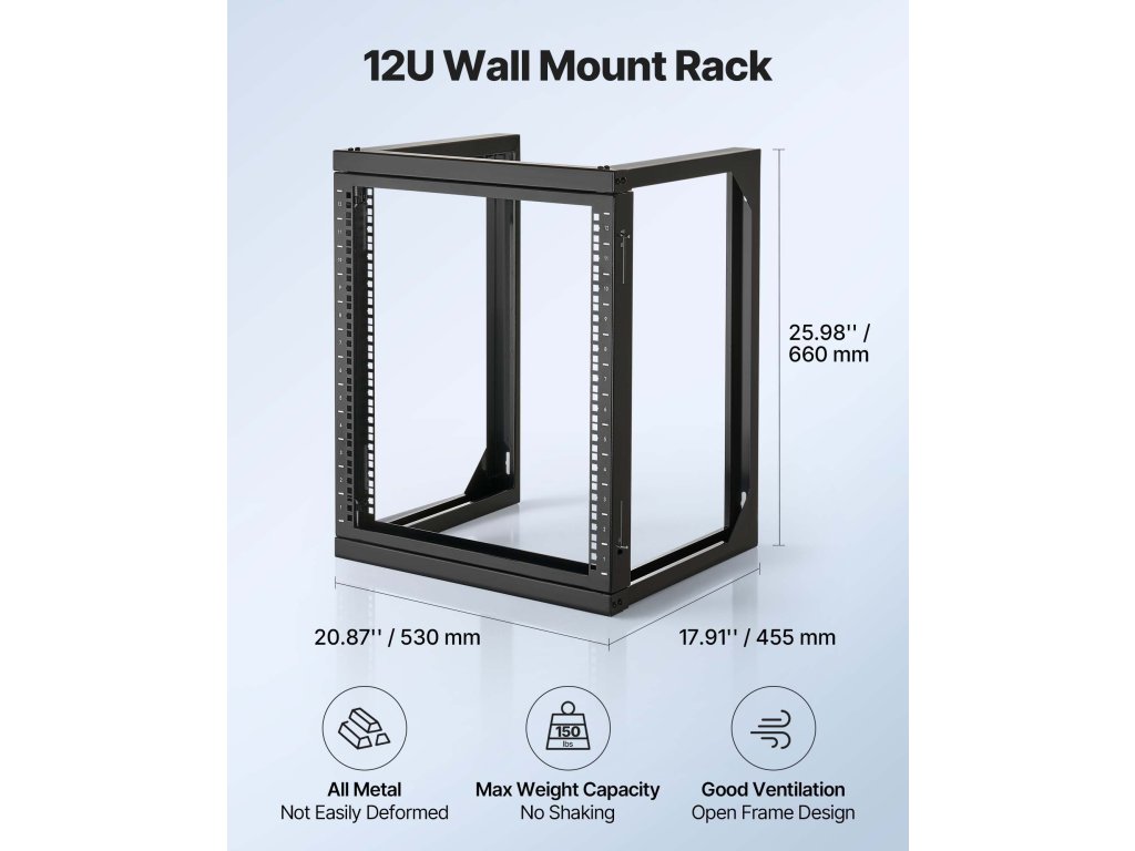 Ez a falra szerelhető szerverállvány masszív felépítésű, ellenáll az ütéseknek és deformációknak, így garantálja a biztonságot és a megbízhatóságot.