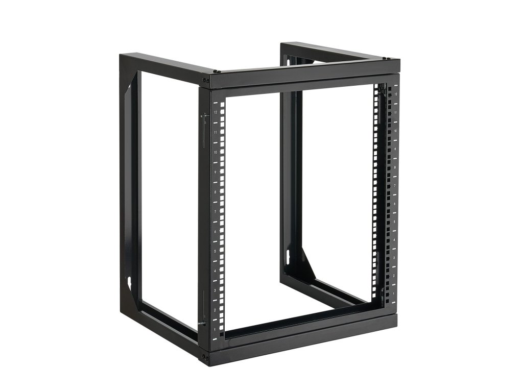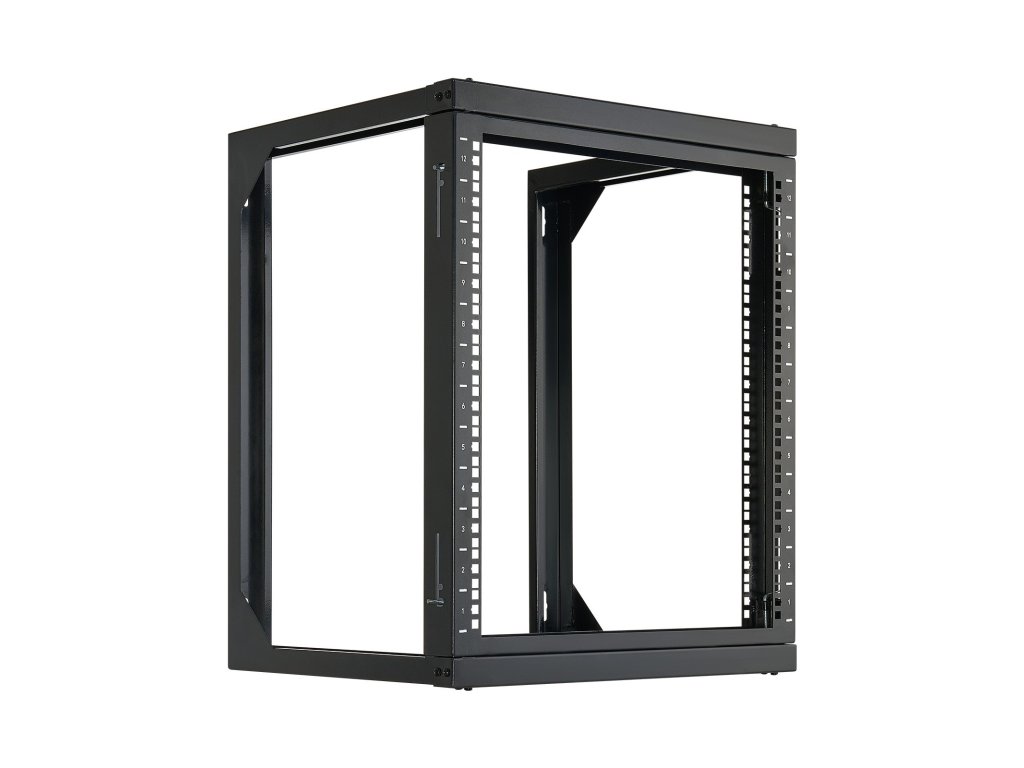 Falra szerelhető 12U szerverállvány, teherbírás 68,04 kg, 180°-os ajtók, acél