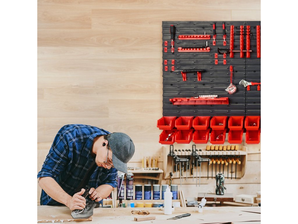 Falra szerelhető alkatrész-rendező 30 műanyag doboz kampókkal és panelekkel
