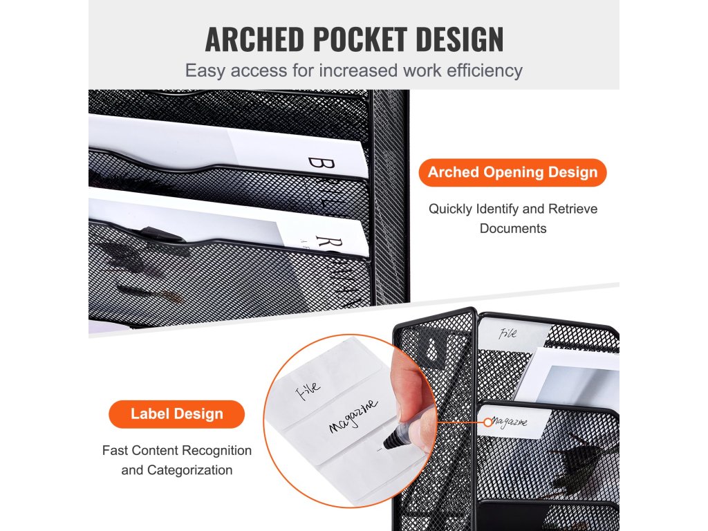 Hálós fali irattartóink többszintű tárolási kialakítást és címkézési rendszert használnak, amely időt takarít meg Önnek azáltal, hogy a fájlok visszakeresése gyors és egyszerű.