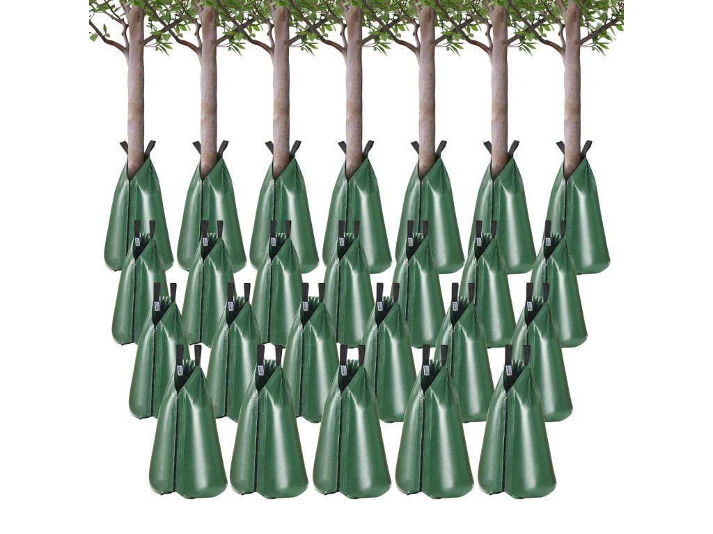 Ez a faöntöző zsák ideális új telepítésekhez vagy szárazságra érzékeny fákhoz a kertekben és gyümölcsösökben, mivel hatékony és stabil öntözést biztosít. A nagy, 75,7 literes (20 gallon) kapacitású zsák lassan, 5-9 óra alatt engedi ki a vizet, hogy mélyen hidratálja a fák gyökereit és elősegítse az egészséges növekedést.