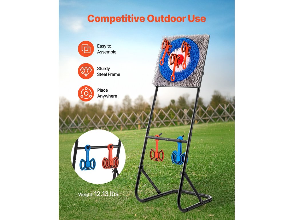 A céltábla állványt úgy tervezték, hogy stabil legyen, és könnyen elkapja a dobásokat. Ez a baltadobó játékkészlet tökéletes háztáji játékokhoz, szabadtéri partikhoz és izgalmas családi versenyekhez.