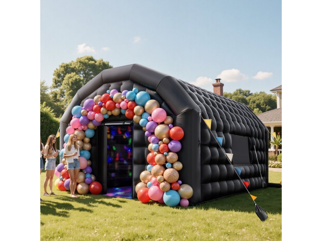 Felfújható éjszakai klub 6 × 5 × 3,66 m, 680 W-os ventilátor, 2 ablak
