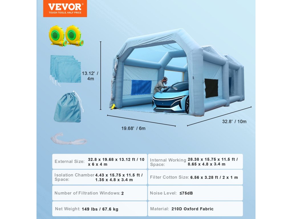 VEVOR, a szerszámszakértő körülötted. A felfújható festőkabin 201D oxford szövetből és PVC anyagból készült, tartós és szennyeződésálló. Ideális választás bútorok festéséhez, szabadtéri kempingezéshez stb.