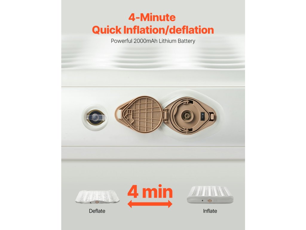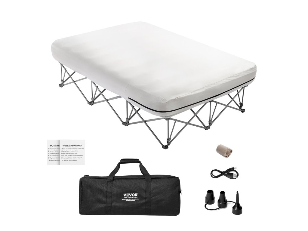 Felfújható kempingágyunk könnyen összeszerelhető. Hosszú élettartamú légpumpával rendelkezik, és mindössze 4 perc alatt felfújódik. A matrac kényelmes pihenőhelyet biztosít, a PVC poliészter szövet és a rugók pedig tartósságot kölcsönöznek. Használat után kompakt módon összecsukható a könnyű tárolás és szállítás érdekében.