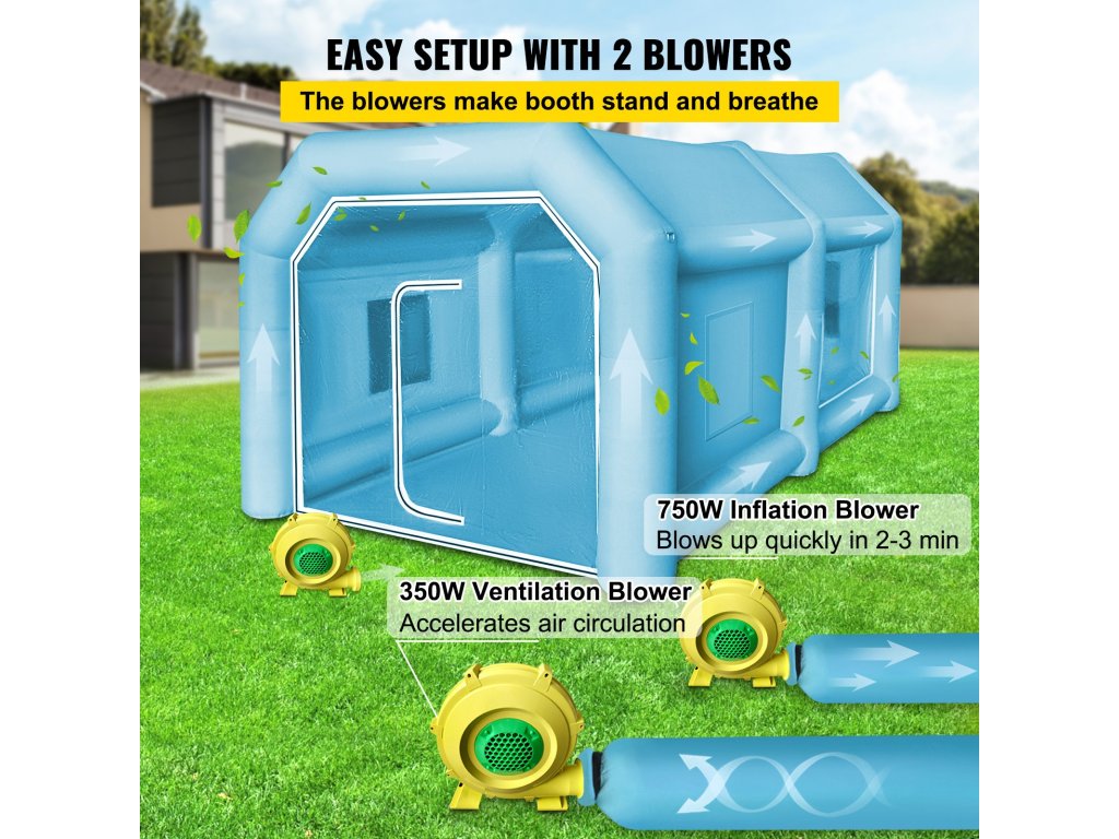 Felfújható munkasátor 13×8×7 láb, 210D Oxford, 2 ventilátorral