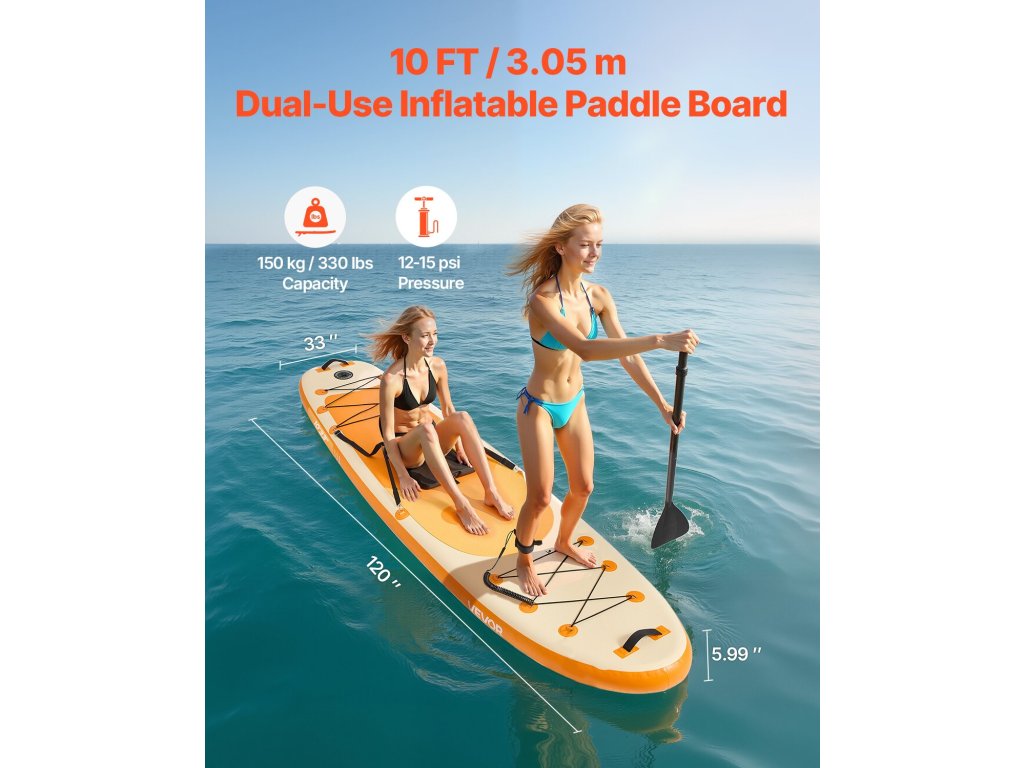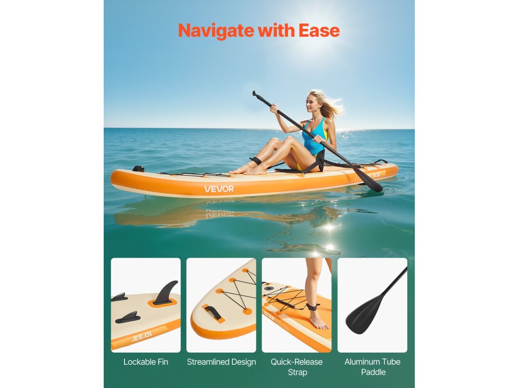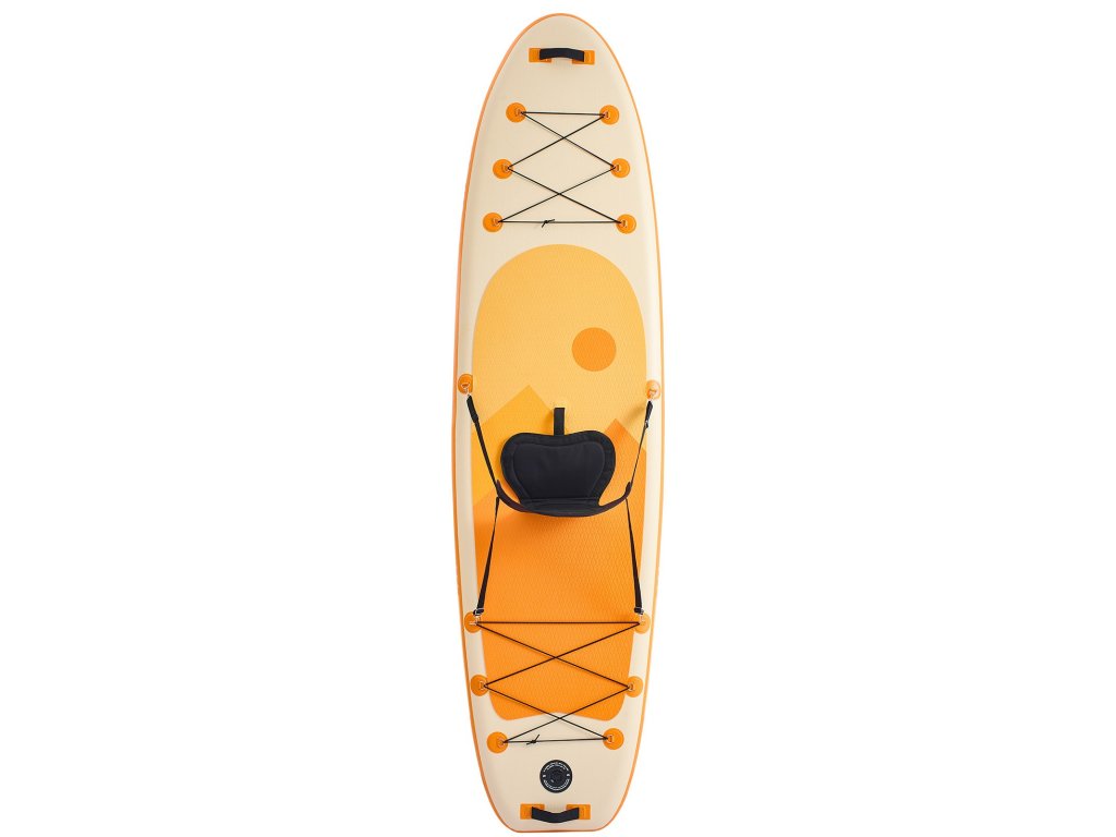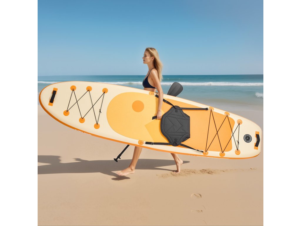 Az új, ultrakönnyű, katonai minőségű, kétrétegű PVC-ből készült stand-up paddle board belseje kiváló minőségű, szálcsiszolt technológiával készült, amely növeli a deszka merevségét és csökkenti a deszka hajlamát a vetemedésre vagy sérülésre. Az ergonomikus fogantyúnak köszönhetően egy kézzel is könnyen hordozható.