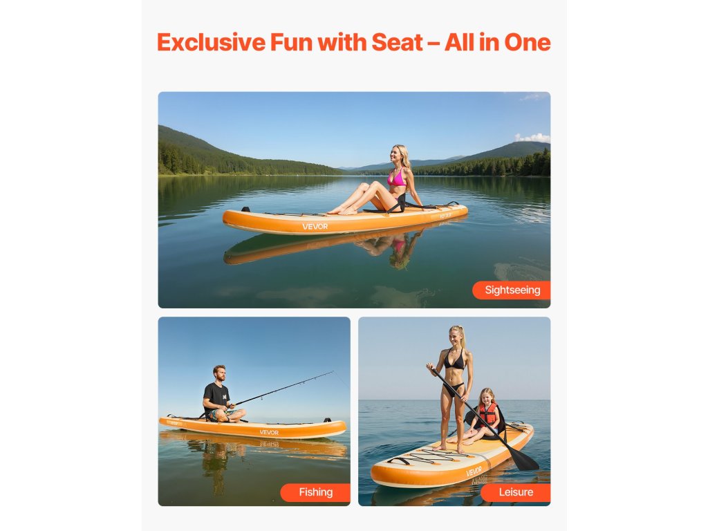 1. kérdés: Hány lapát jár a deszkához?A1: 1 professzionális lapátot tartalmaz! Alumínium csőből készült az extra szilárdság érdekében! 2. kérdés: Az ülés befolyásolja a stabilitást? Szükségem van szerszámokra a felszereléséhez?A2: Az ülés kattintás-záró rendszert használ, 10 másodperc alatt állítható be.Q3: Ez az evező kezdőknek is alkalmas?A3: Ezt az evezőt kezdőknek tervezték, még a tapasztalatlan felhasználók is gyorsan elsajátíthatják az evezési készségeket és jól szórakozhatnak a vízen!Q4: Milyen PSI a legjobb?A4: 12 - 15 PSI (zöld zóna a szelepen) az ideális. 5. kérdés: A szivattyú tartós?A5: Az ikerhengeres nagynyomású szivattyúinkat szigorúan teszteljük többszöri felfújás esetén a hosszú élettartam érdekében.