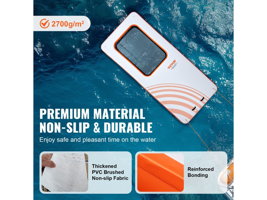 Menj a végtelen szórakozásért a tökéletes úszó vízi szigetünkkel! A nagy sűrűségű, szálcsiszolt PVC-szövettel, megerősített csatlakozásokkal és szivárgásmentes HR felfújható szelepekkel készült úszó platformunk megakadályozza a csúszást, a kipukkadást és a szivárgást, így biztonságosan és magabiztosan játszhatsz.