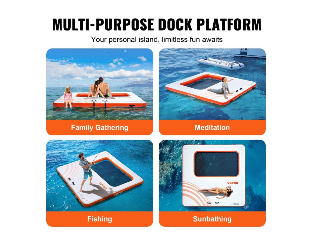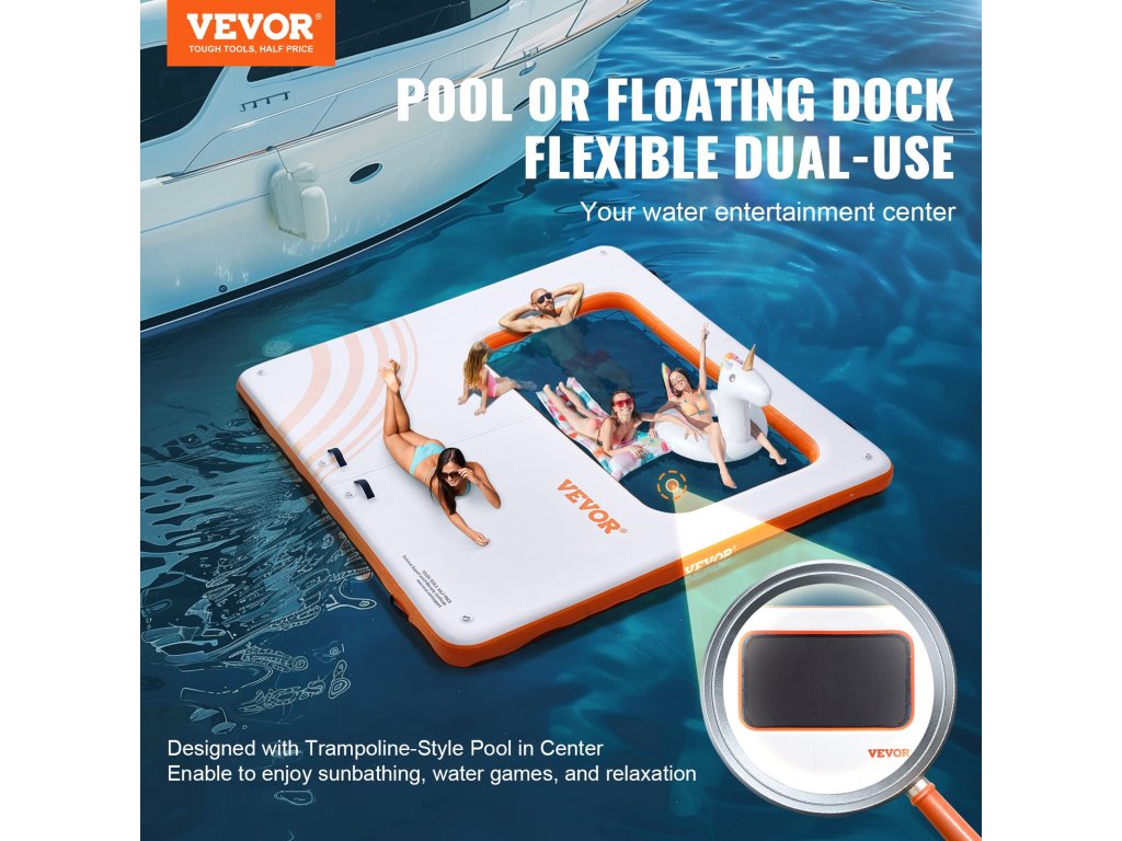 Merüljön el a végtelen vízi szórakozásban az innovatív 10 x 10 láb méretű VEVOR felfújható dokkolóval! A tágas, 4*7 lábas trambulinhálós medencével, kiváló minőségű anyagokkal, könnyű felfújással és leeresztéssel, biztonságos rögzítéssel és sokféle felhasználási lehetőséggel rendelkező dokkoló tökéletes kiegészítő a biztonságos és élvezetes vízi kalandokhoz.