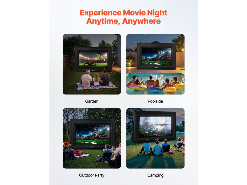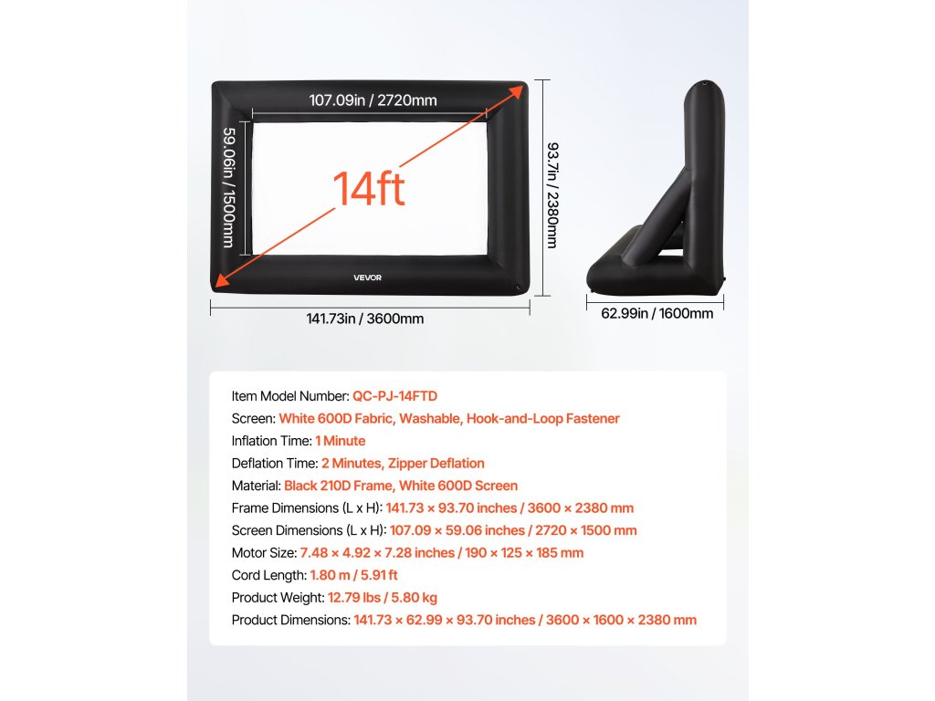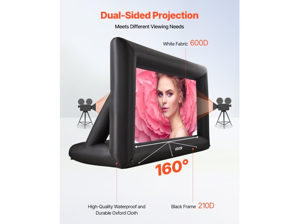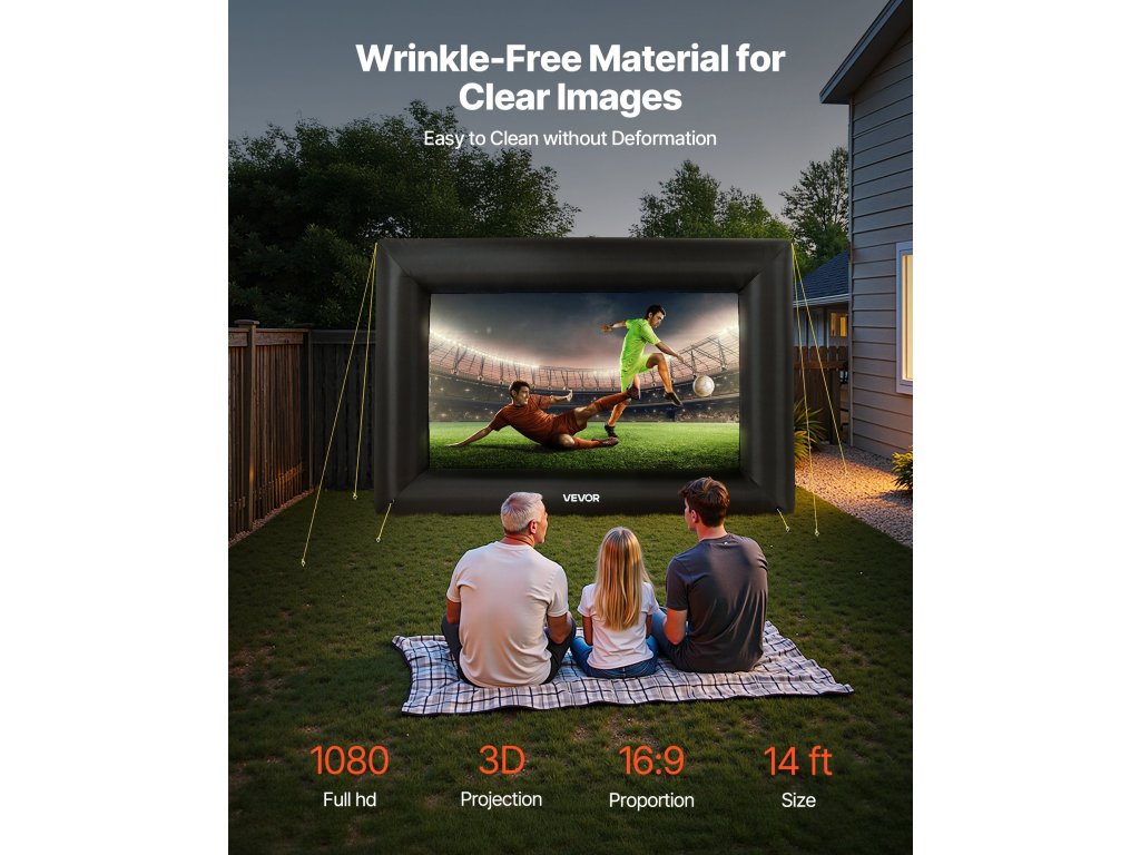 Felfújható vetítővászon, 14 láb, 16:9, 600d, hordozható, fedéllel