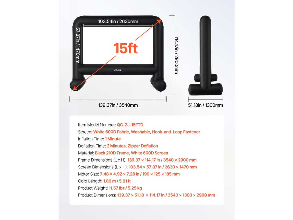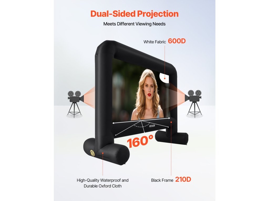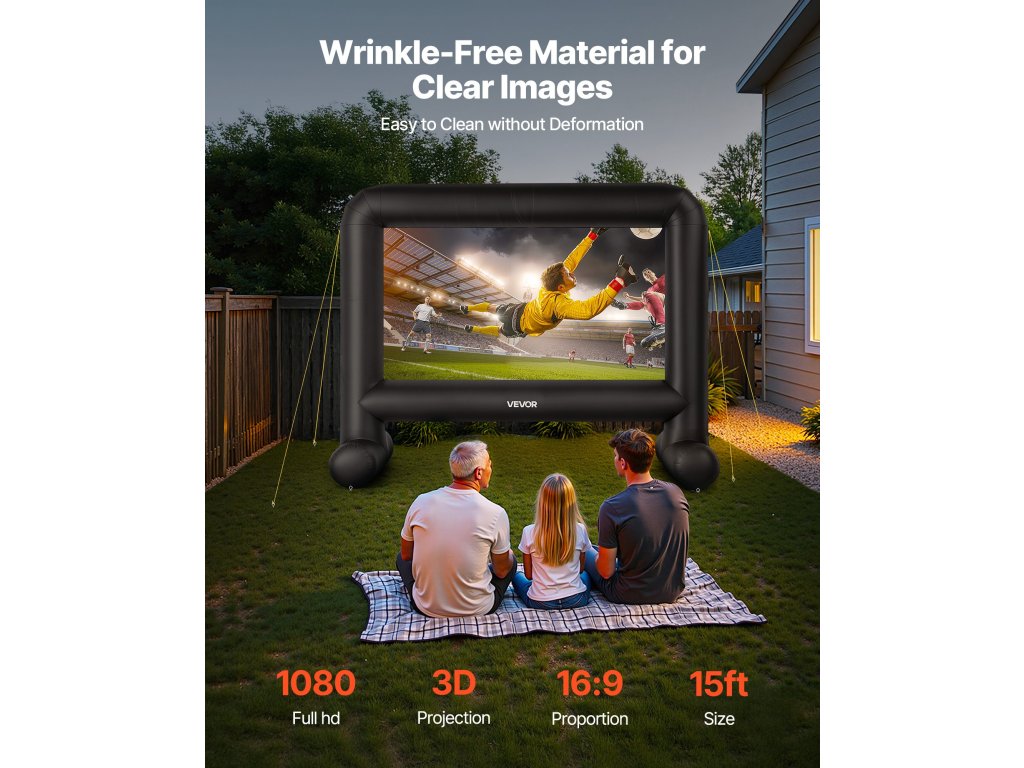 Felfújható vetítővászon 15 láb 16:9 600D mosható huzattal