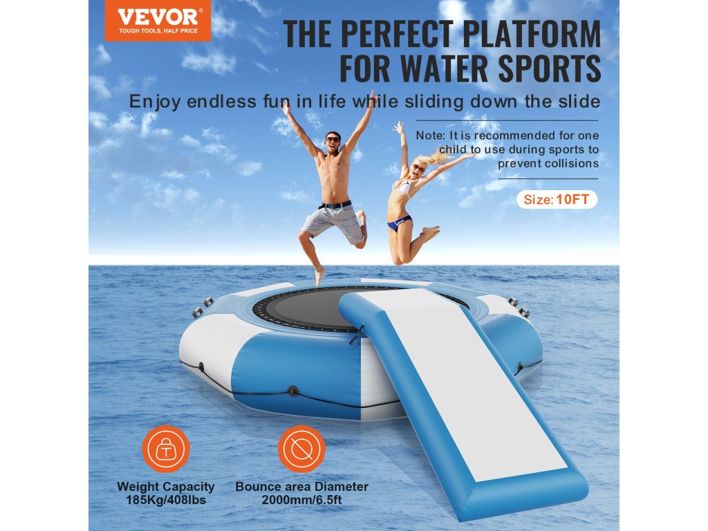 Kék és teáskék színben kapható, stílusos és élénk, így Ön a saját ízlése szerint választhat. A vízi trambulin és a csúszda kombinációja még több szórakozást nyújt a vízi parkban.