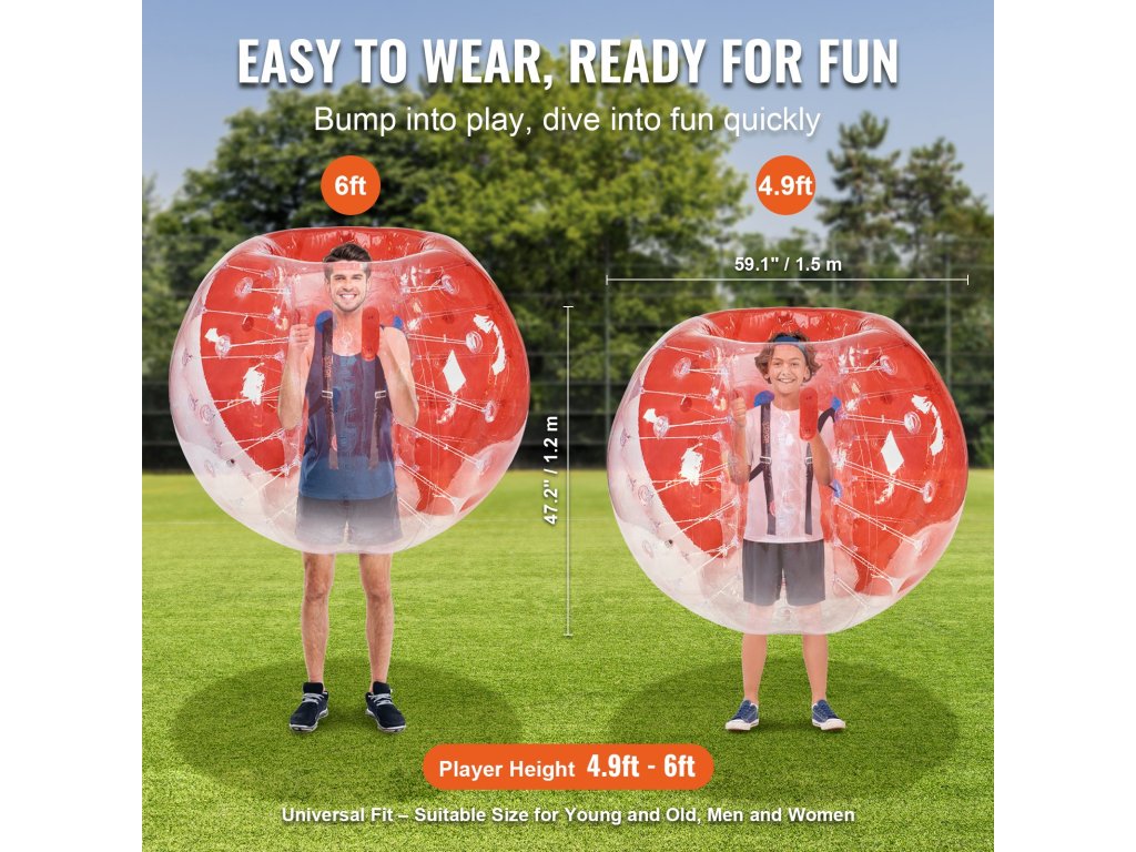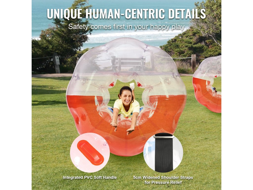 A VEVOR felfújható labdákkal a legnagyobb szórakozást élvezheti. A 0,8 mm vastag, robbanásbiztos PVC-ből készült, 5 láb külső átmérőjű ütközőgolyóinkat a maximális tartósság és biztonság érdekében tervezték. Készüljön fel a becsapódási izgalmakra, és teremtsen felejthetetlen pillanatokat a VEVOR buborékos labdákkal!