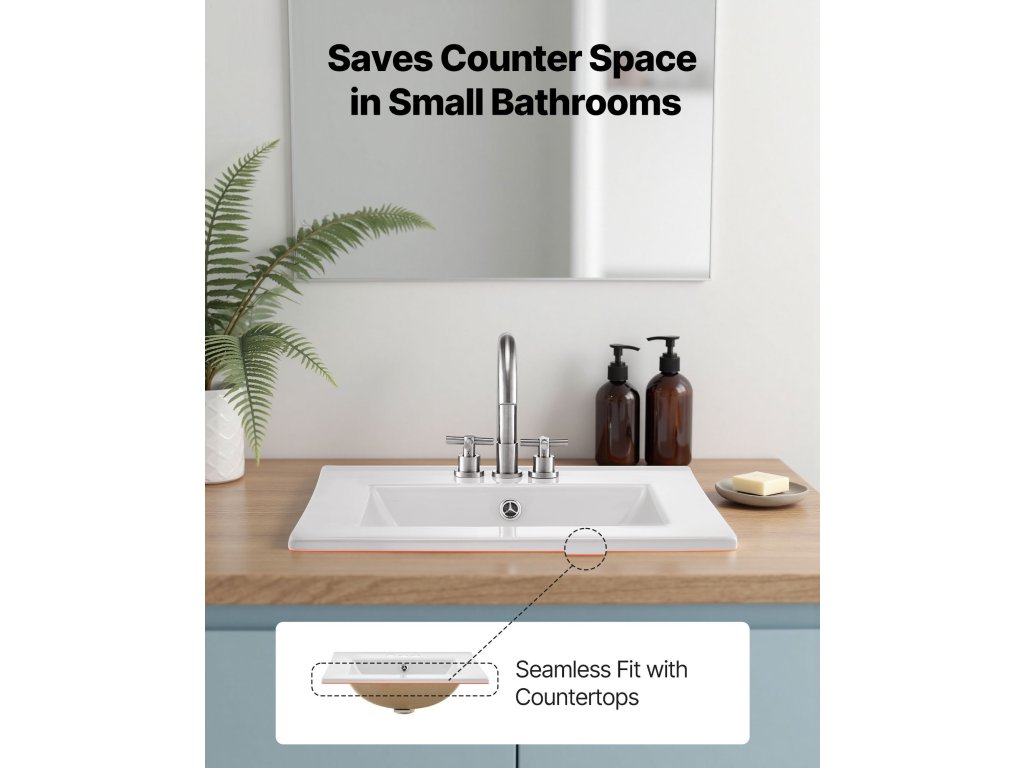 A félig süllyesztett mosdókagyló zökkenőmentesen illeszkedik a munkalapba, kiemelve a praktikus, modern stílust, miközben maximalizálja a fürdőszoba hasznos terét. Alkalmas kis alaprajzú és modern otthonokba.
