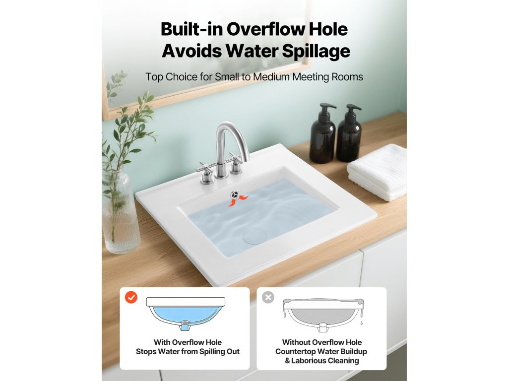 Az ívelt aljjal és széles lefolyónyílással kialakított fürdőszobai félig süllyesztett mosdókagyló elősegíti a zökkenőmentes lefolyást a víz összegyűlése nélkül. Ellenáll a szagoknak, és tisztán és szárazon tartja a mosdókagylót, így kényelmesebbé és hatékonyabbá teszi a mosakodást.