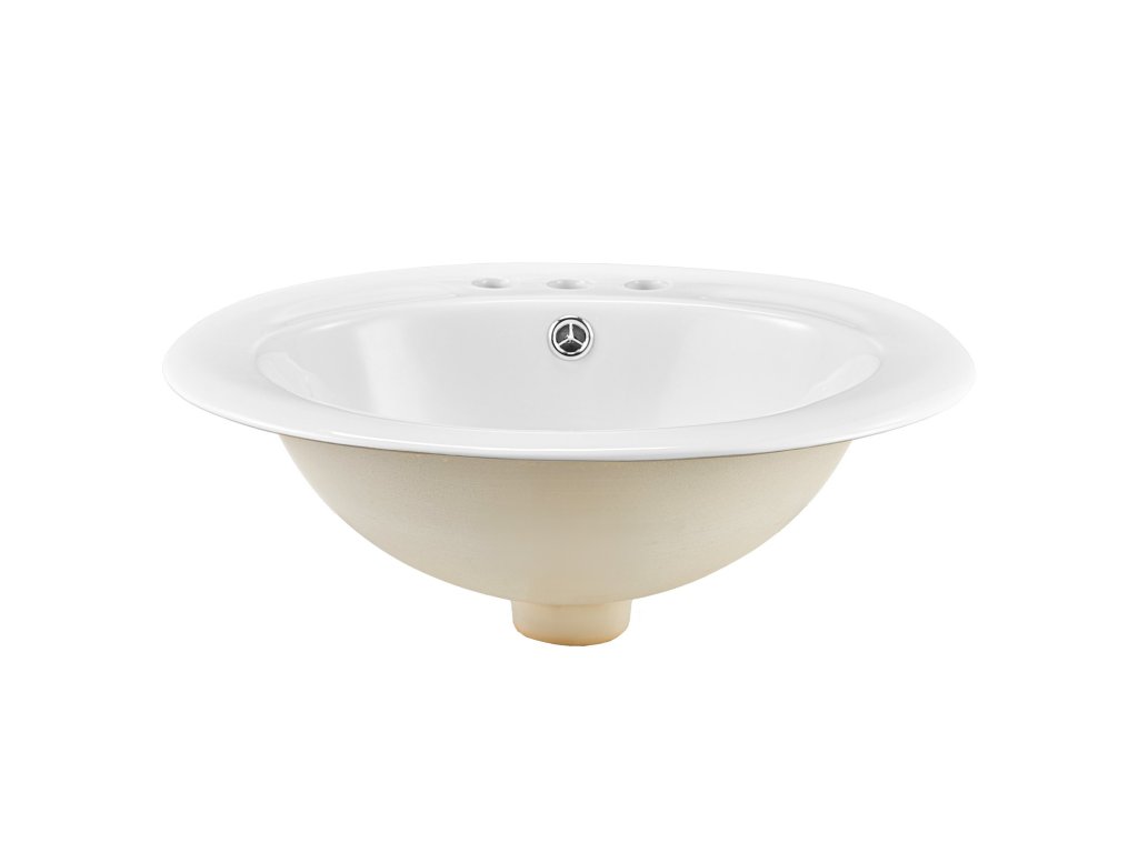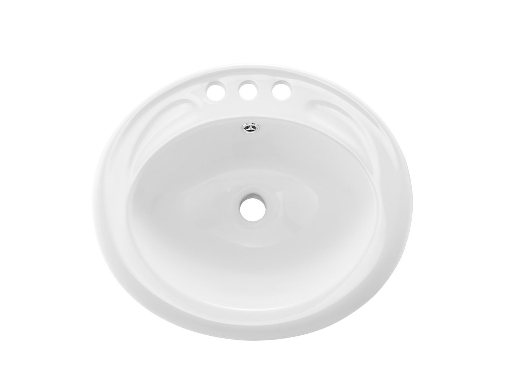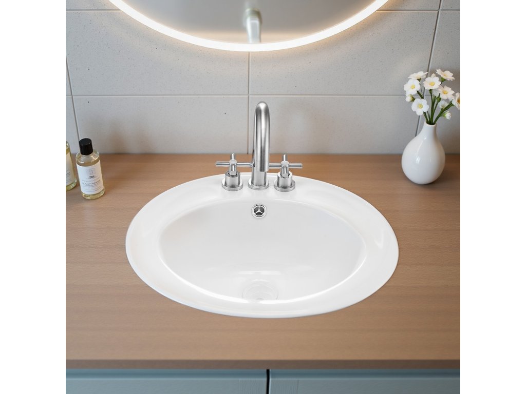 Félig süllyesztett ovális kerámia mosdó 485×425 mm túlfolyóval, 3 lyukkal