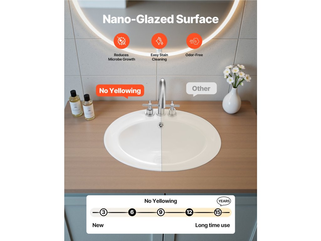 Anti-sárgulás félig süllyesztett fürdőszoba mosogató