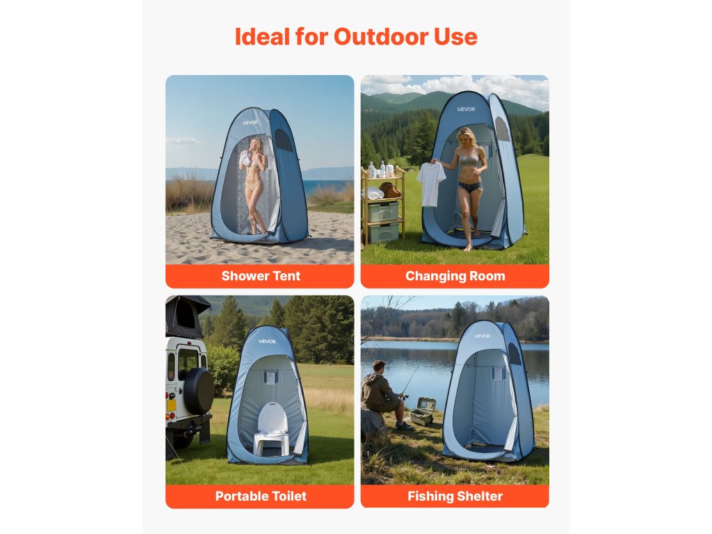 Zuhanyzó sátrunk könnyű és hordozható, alkalmas kempingezéshez, tengerparti kirándulásokhoz, fotózáshoz vagy horgászathoz. Privát helyet biztosít az öltözködéshez, zuhanyozáshoz vagy a szabadban való pihenéshez.